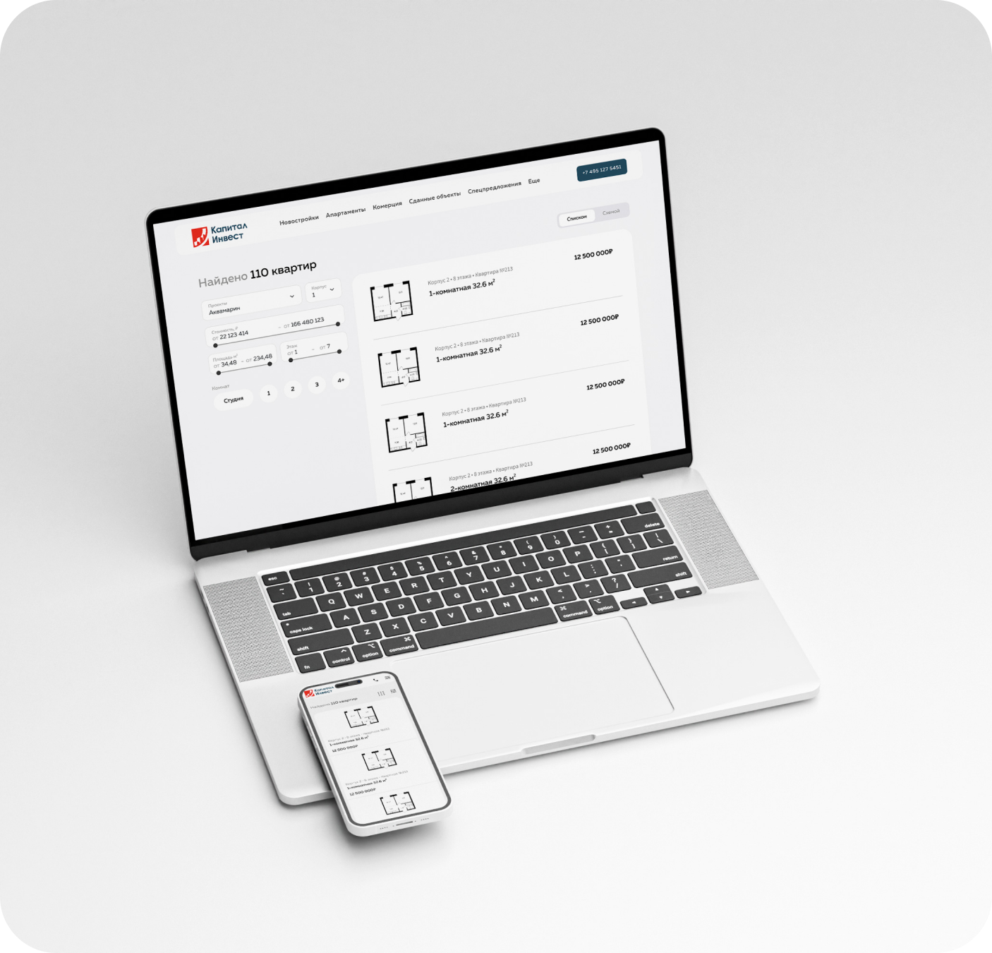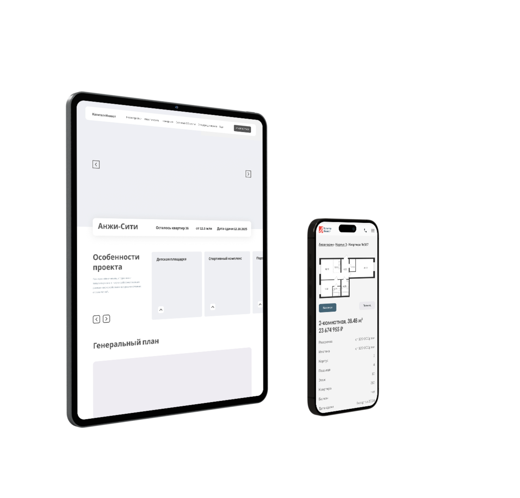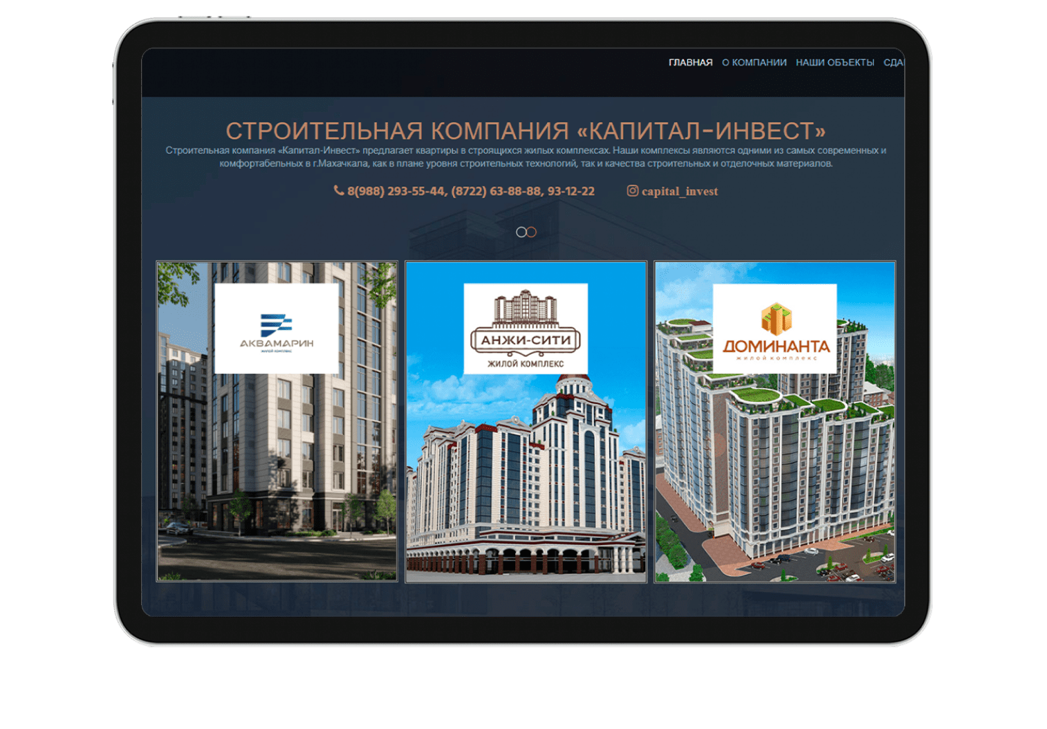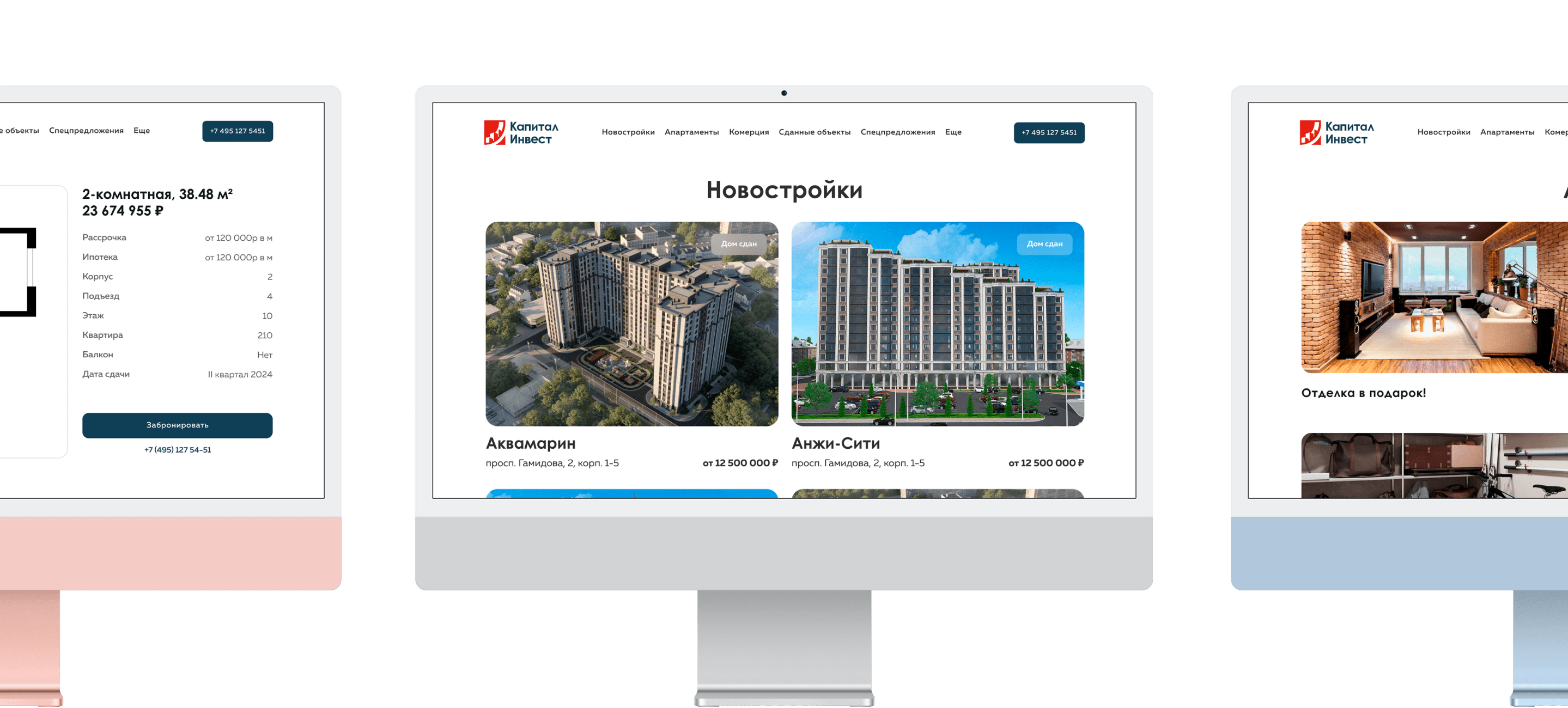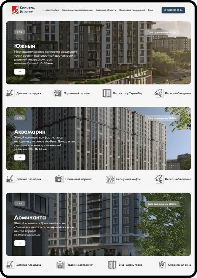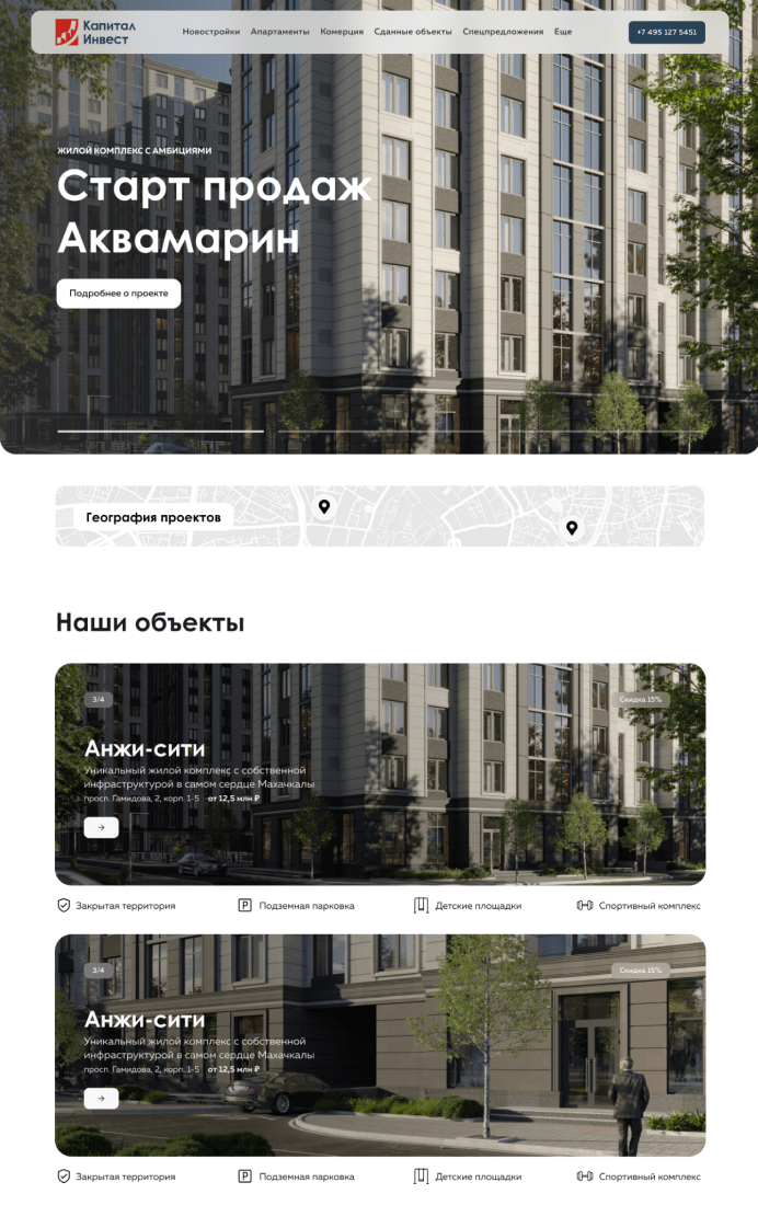 Компания Капитал-инвест обратилась с запросом редизайна существующего сайта. Их главная цель — сделать площадку для просмотра и бронирования строящихся под их руководством помещений и зданий.