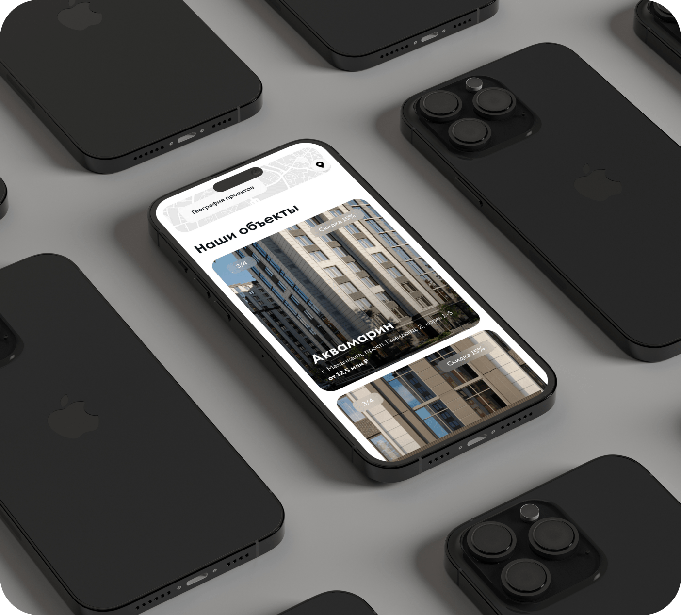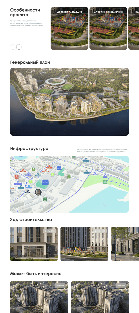 Добавить опции просмотра географии проектов, галереи и схемы строящихся помещений. У клиентов есть возможность забронировать любой понравившийся проект через сайт.